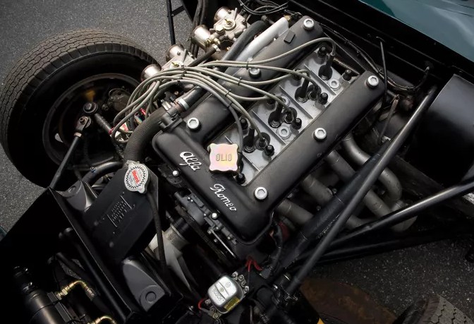 To understand the Giulia TZ is to deconstruct its very name: Tubolare Zagato. The mechanical foundation of the car was a complex, three-dimensional spaceframe woven from nickel-chrome-molybdenum steel tubes. Fabricated by Ambrosini, this skeletal masterpiece weighed a staggering 62 kilograms (roughly 137 pounds), providing immense torsional rigidity while shedding every conceivable ounce of excess mass. To ensure an impossibly low hood line for aerodynamic efficiency, Alfa Romeo’s legendary 1,570cc Bialbero (twin-cam) inline-four engine was mounted at a severe 15-degree angle. In the Stradale versions, this alloy jewel breathed through twin Weber carburetors to produce a highly spirited 112 horsepower. However, when the Corsa variants were handed over to the wizards at Autodelta—Alfa’s newly minted racing division led by the brilliant Carlo Chiti—the engine was pushed to a screaming 160 horsepower. Power was transmitted through a crisp five-speed manual gearbox to a fully independent rear suspension. In a stroke of motorsport genius, Chiti and the engineering team utilized inboard rear disc brakes, mounting them directly to the differential rather than the wheel hubs. This drastically reduced unsprung weight, allowing the TZ1 to dance over the rutted, undulating surfaces of European road courses with an agility that left heavy American V8s and larger Ferraris floundering in its wake.