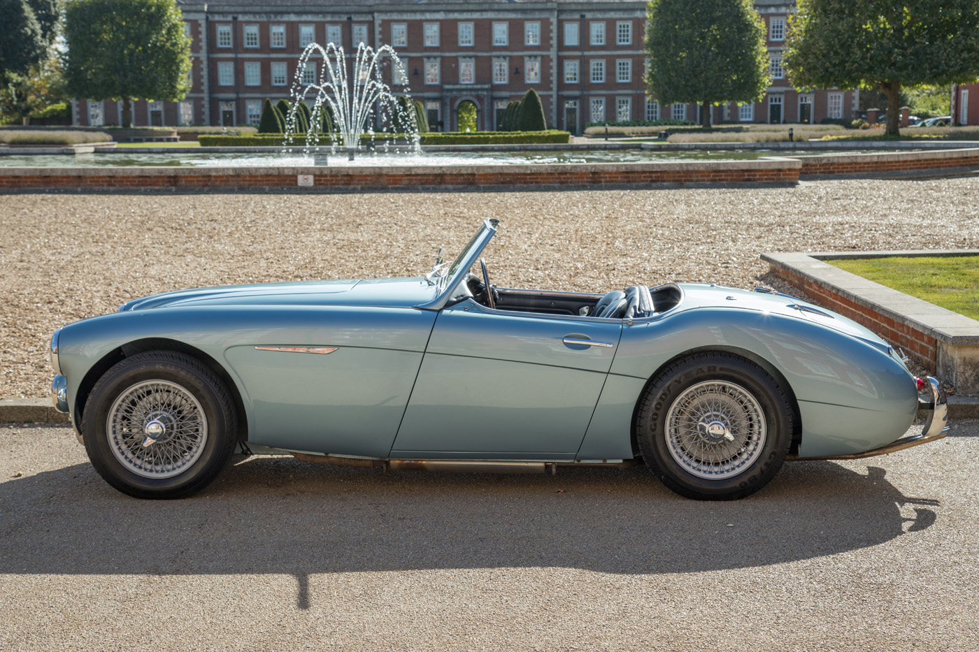 To lift the long, louvered bonnet of the Mk II BN7 is to witness the absolute mechanical centerpiece of this specific generation: a bank of three SU HS4 carburetors. The 2,912cc C-Series inline-six engine had been carried over from the Mark I, but BMC’s Competitions Department desperately needed better high-rpm breathing to keep the works rally cars competitive against the rising threat of Porsche and Alfa Romeo. The solution was to homologate the triple-carburetor setup on the production cars. This modification bumped the street car’s output to a very healthy 132 brake horsepower and 167 lb-ft of torque. When the throttle was pinned, those three carburetors inhaled with a deep, percussive roar that sounded like tearing calico, propelling the BN7 to 60 mph in under 11 seconds. Aesthetically, the Mk II was subtly refined; Gerry Coker’s masterful sweeping lines were retained, but the front fascia was modernized with a new grille featuring vertical bars instead of horizontal slats. Beneath the skin, the chassis remained a heavy, traditional ladder-frame setup equipped with independent front coil springs, a live rear axle on leaf springs, and Girling disc brakes at the front. Inside, the BN7 was unashamedly archaic. It retained the traditional, drafty side-screens and the complex, knuckle-busting fold-away weather gear. There were no roll-up windows or wrap-around windscreens here; the driver sat low, gripping a large steering wheel, immersed entirely in the elements and the mechanical symphony of the straight-six.