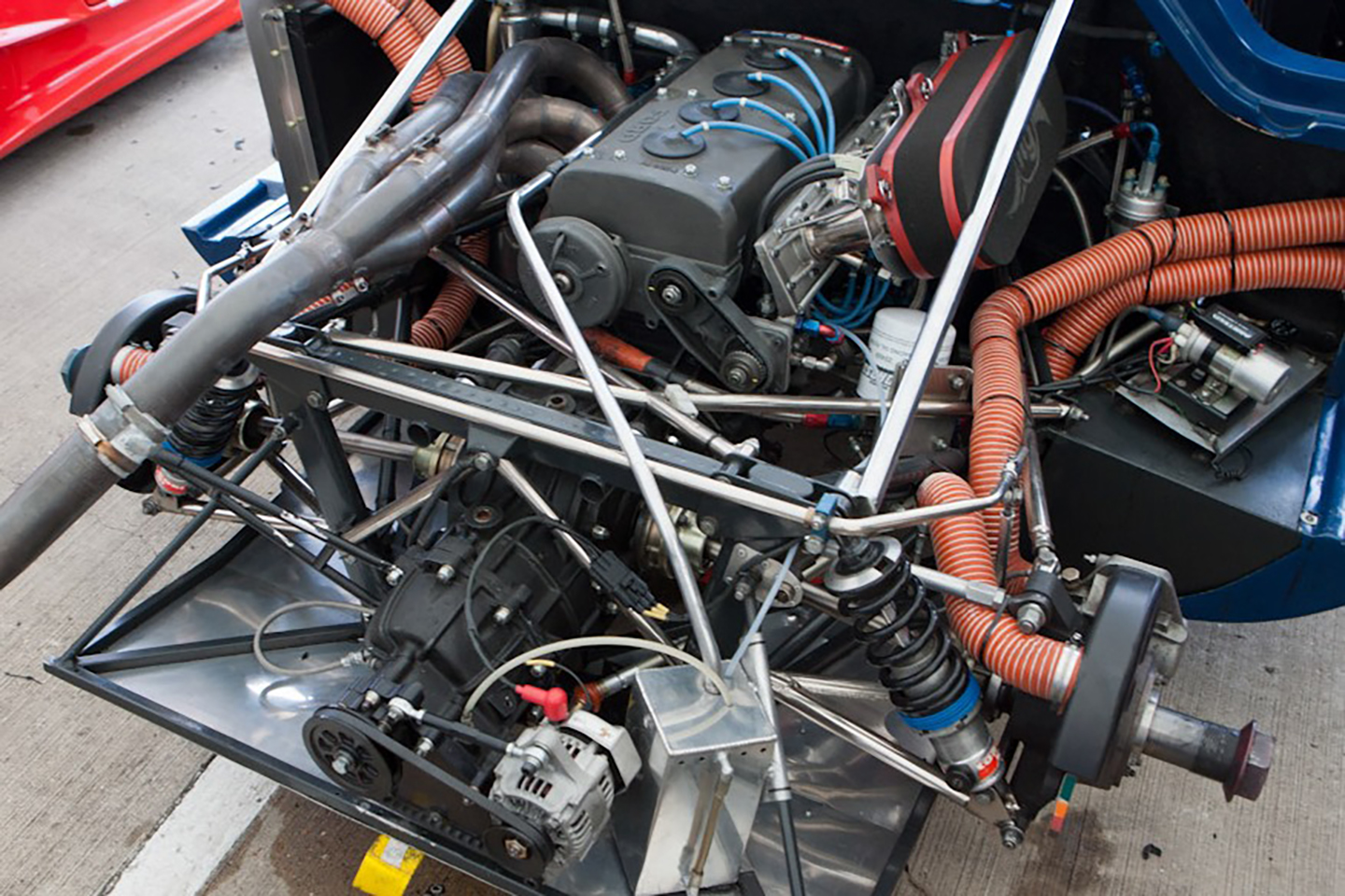 The FVA (Four Valve Type A) was not a sports car engine by nature; it was a Formula 2 engine. Designed by the legendary Keith Duckworth, it was the technological precursor to the DFV V8 that would dominate Formula 1. Displacing just 1,598cc, this inline-four was a masterpiece of high-revving precision. It featured a gear-driven double overhead camshaft cylinder head sitting atop a Ford Cortina block, fed by Lucas mechanical fuel injection. In the back of the B16, it produced around 225 bhp, but it did so at a frenetic 9,000 rpm. It was a peaky, aggressive powerplant that demanded a driver who was precise with the gearbox and unafraid to live near the redline. Bennett mated this jewel of an engine to his signature chassis philosophy: a tubular steel spaceframe. While bigger manufacturers were experimenting with aluminium monocoques, Bennett believed the spaceframe offered better feedback and easier repairability for the privateer teams that were his bread and butter. The bodywork, crafted by Specialised Mouldings, was a triumph of aerodynamics, generating genuine downforce with a low drag coefficient, essential for the long straights of European circuits.