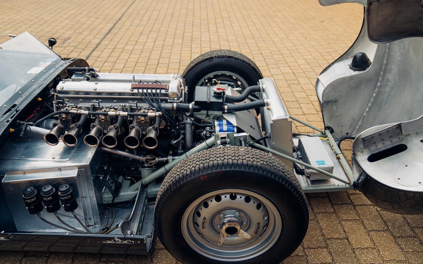 However, the defining characteristic of the vehicle, and the source of its affectionate nickname, was its bodywork. The “Knobbly” shape was not styled; it was shrunk-wrapped. To minimize the frontal area while accommodating the tall Jaguar XK inline-six engine, the aluminium skin had to undulate wildly. It hugged the wheels, dipped low for the cockpit, and rose again over the rear haunches. The bonnet featured a prominent bulge to clear the cam covers and carburetors, creating a silhouette that looked like a series of knuckles or knobs. Under that bonnet usually sat the 3.8-litre, dry-sump Jaguar D-Type engine, breathing through triple Weber 45 DCOE carburetors. Producing upwards of 300 bhp and a mountain of torque, this engine, when mated to the featherweight Lister chassis (the whole car weighed barely 780 kg), resulted in a power-to-weight ratio that was terrifying. While Jaguar engines were the standard, the chassis was versatile enough to accept the Chevrolet small-block V8 for American customers, creating the monstrous Lister-Chevy, a car that combined British handling with Detroit horsepower to devastating effect.