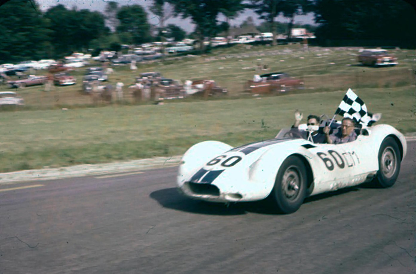 However, the story took a dark turn at Spa-Francorchamps in May 1958. While battling for the lead against Masten Gregory’s Ferrari, Scott Brown crashed in the rain; the magnesium-bodied car caught fire, and the beloved driver succumbed to his injuries the following day. Brian Lister was devastated. Although the team continued—with Stirling Moss famously winning the British Grand Prix support race in a Knobbly just weeks later to honor Archie—the heart had gone out of the operation. Brian Lister eventually withdrew from racing, but not before the Knobbly had cemented its reputation. across the Atlantic, the car found a second life. Briggs Cunningham, the American sportsman, campaigned the Lister-Jaguars and Lister-Chevys in the SCCA championships with Walt Hansgen, dominating the C-Modified class and proving that the chassis was robust enough to handle the rougher American circuits.