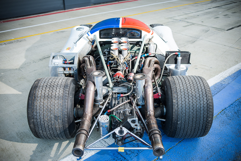 But a chassis is nothing without a heart, and the T70’s soul was undoubtedly American. While a few chassis experimented with Ford units, the definitive engine for the T70 was the Chevrolet Small Block V8. Typically displacing 5.0 to 5.7 litres (and later up to 7.0 litres in Can-Am spec), these engines were often prepared by the legendary Traco Engineering. They were relatively simple pushrod units, but they were light, reliable, and produced a mountainous wave of torque—upwards of 500 bhp in early tune. This power was fed through a Hewland LG500 or LG600 four-speed transaxle, a gearbox robust enough to handle the violent shock loads of a big V8.