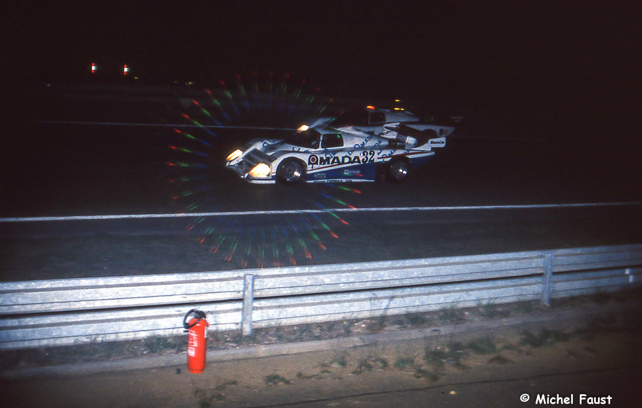 To strip away the sweeping, aerodynamic bodywork of the March 85G is to witness a masterclass in pragmatic, modular race car engineering. The foundation of the vehicle was an immensely rigid, lightweight aluminium honeycomb monocoque tub. While carbon fiber was beginning to permeate the Formula 1 grid, aluminium honeycomb remained the favored material for endurance constructors due to its cost-effectiveness, repairability in the pits, and proven structural integrity over twenty-four hours of punishing abuse. Aerodynamically, the 85G smoothed out the distinctive, blunt “lobster claw” front end of the earlier 82G, replacing it with a sleeker, more refined nose that channeled air cleanly over the canopy and, crucially, into the massive venturi tunnels that dominated the car’s underside. Ground effect was the dark art of the era, and the 85G generated immense, neck-straining levels of aerodynamic downforce, sucking the chassis to the tarmac at speeds exceeding 200 mph. But the true engineering sorcery lay behind the driver’s firewall. The engine bay was deliberately designed to be cavernous and adaptable. In the United States, IMSA privateers like Conte Racing shoehorned in explosive, turbocharged Buick V6 engines, creating flame-spitting monsters that produced apocalyptic horsepower but suffered from fragile reliability. Others opted for the thunderous reliability of naturally aspirated Chevrolet V8s or even the proven Porsche flat-six. However, the most significant mechanical marriage occurred when the Japanese factory Nissan motorsport division, Nismo, purchased 85G chassis. They seamlessly integrated their own VG30T 3.0-liter, twin-turbocharged V6 engine, effectively transforming the British mercenary into the Nissan R85V. To reign in the ferocious power of these varied engines, the 85G utilized a conventional but robust suspension setup of double wishbones with inboard coilover shock absorbers, while stopping power relied on massive, ventilated AP Racing iron disc brakes that glowed a violent, cherry red deep into the night at Le Mans. Inside, the cockpit was a brutal, claustrophobic workspace; the driver sat enveloped by aluminium bulkheads, fighting incredibly heavy, unassisted steering while monitoring a dizzying array of analog gauges that dictated the life or death of the highly stressed engine behind them.