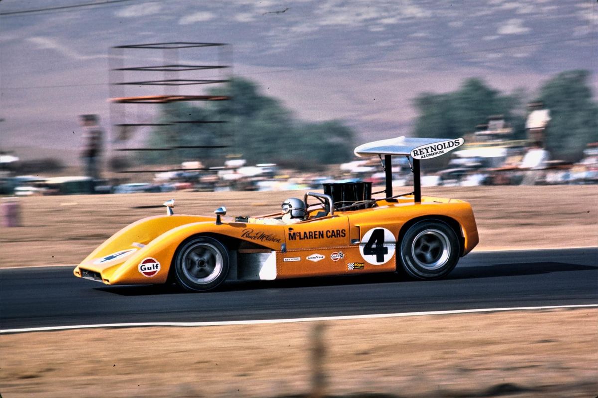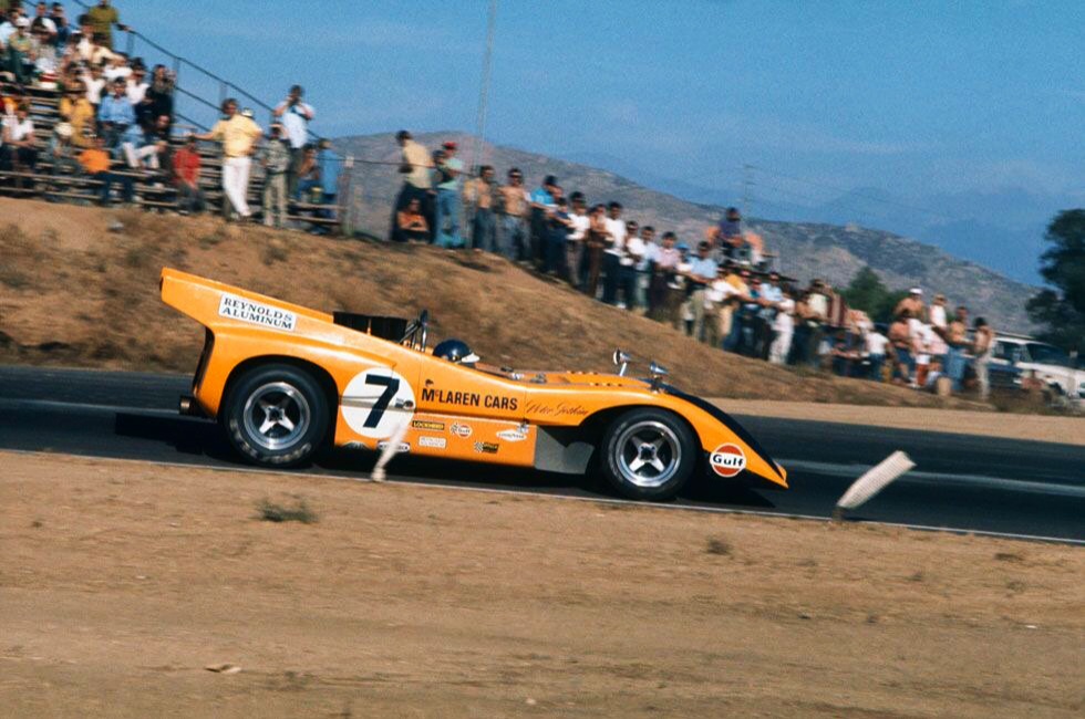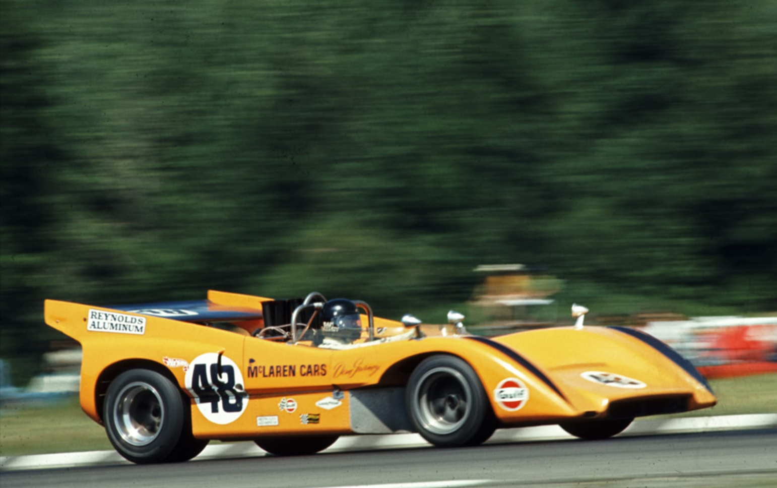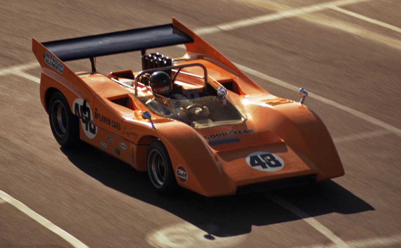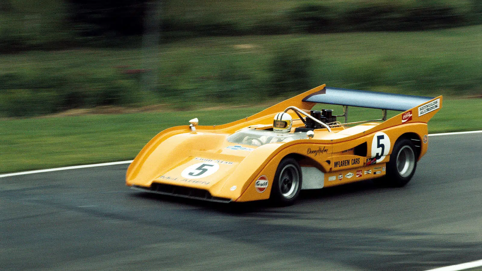 To fully grasp the magnitude of the McLaren M8 lineage, one must first transport themselves back to the late 1960s, to an era when the Canadian-American Challenge Cup—universally revered as Can-Am—was the most spectacular, terrifying, and unrestricted theater in global motorsport. Governed by FIA Group 7 regulations, Can-Am essentially had no rules: no engine displacement limits, no weight minimums, and virtually boundless aerodynamic freedom. It was a blank canvas for mad scientists and brave pilots. Bruce McLaren’s fledgling team had already tasted championship champagne with the M6A in 1967, establishing the “papaya orange” livery as a warning sign to the paddock. However, standing still in Can-Am meant moving backward. With Eric Broadley’s Lola unleashing the T160 and Jim Hall’s Chaparral constantly threatening with radical aerodynamic witchcraft, McLaren knew they needed a paradigm shift to maintain their supremacy. The result was not just a single car, but an entire dynasty of speed: the McLaren M8. Evolving from the M8A in 1968 through the monstrous M8F in 1971, this lineage did not simply compete in Can-Am; it violently bent the series to its will, birthing the legendary “Bruce and Denny Show” and forging McLaren’s reputation as an indomitable engineering powerhouse.