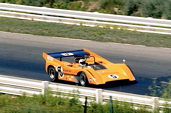 The competitive saga of the M8 lineage is written in gold, but forever scarred by profound tragedy. In 1968, the M8A crushed the opposition, with Bruce McLaren and Denny Hulme trading victories in a display of total dominance. The following year, the high-winged M8B achieved the impossible: the team won all eleven races of the 1969 Can-Am season. It was the absolute zenith of the “Bruce and Denny Show”, an era where arriving at a circuit in anything other than a works McLaren was essentially an exercise in futility. Concurrently, McLaren authorized Trojan, a British manufacturing firm, to construct customer versions of the cars—designated the M8C and later the M8E. This brilliant commercial move ensured that even the privateer ranks were flooded with papaya orange machinery, making the M8 the undeniable backbone of the Can-Am grid.